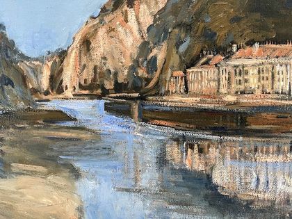 Detail from the painting of Bristol Suspension Bridge. The light & atmosphere constantly changes & I never tire of seeing it. Oil on canvas.1994. 70 x 66 cm.