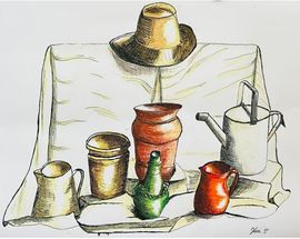 2025 Summer Course. Drawing broken crockery, frequently found in gardens here. I love it & save it for people to draw.