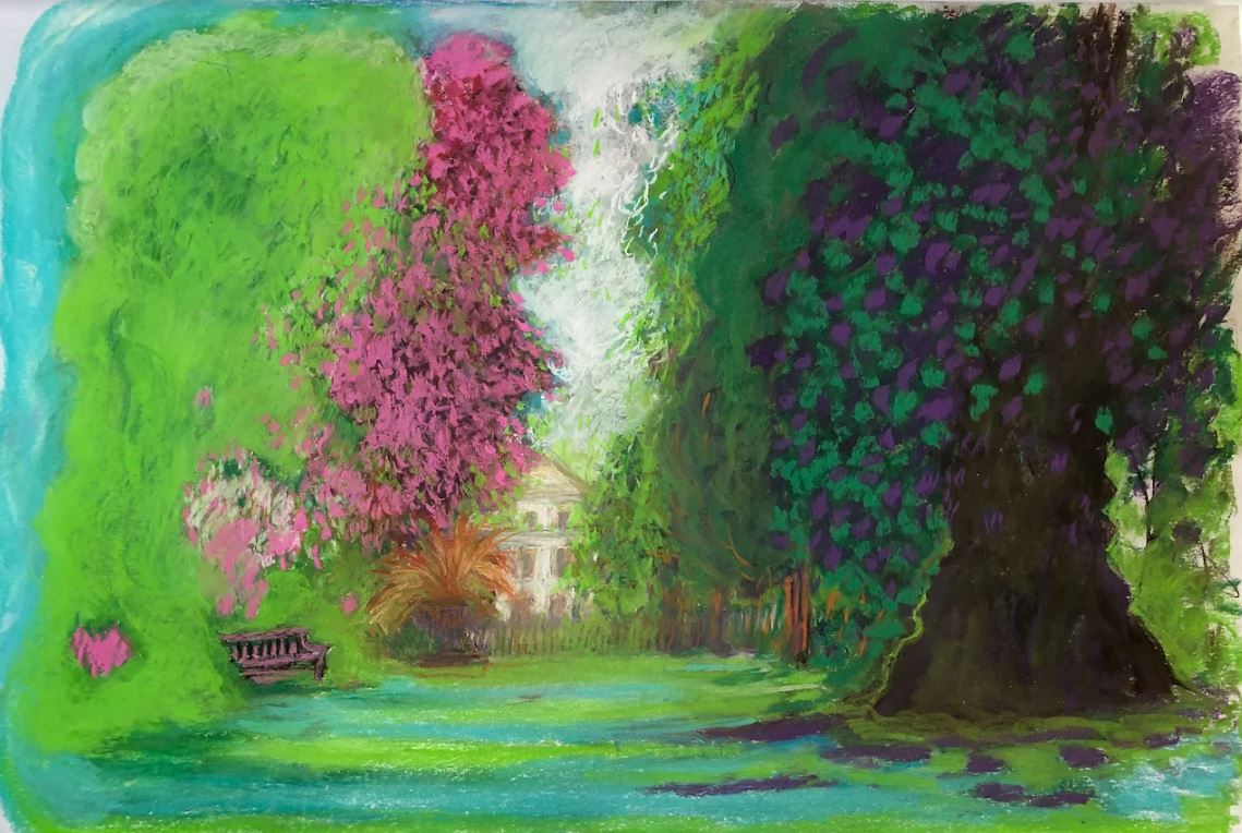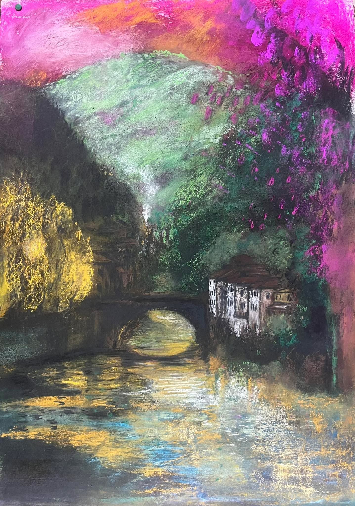 Below - 'Bagni di Lucca in Moonlight'. Pastel 2025.